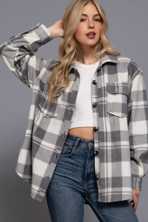 0711 Long Sleeve Check Printed Fleece Shacket SI-28274