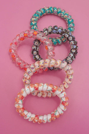 MIX FLOWER FLORAL SET OF 5 COIL HAIR TIES | 40S739