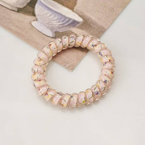 The spiral design of hair ties spreads the pressure of the hair elastic out over a greater surface area of your hair, which helps to minimize the dreaded ponytail bump that hair ties can create on styled hair. Made from soft material these scrunchies can be worn all day and won't damage your hair. pack of 5