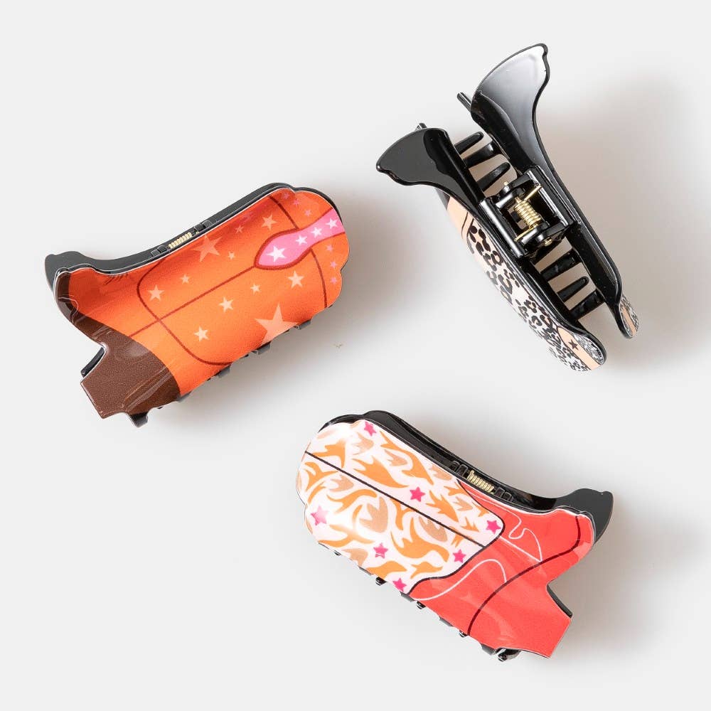 This hair claw brings a unique three piece cowboy boots set style. Delight in the intricate details that make this hair claw an essential element in expressing your fashion identity.